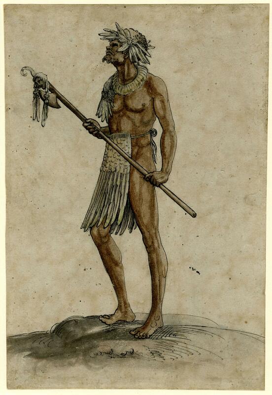 Standing black youth dressed in a feather skirt, cape, and head-dress, Hans Burgkmair the Elder, 1520-1530, drawing, Inv.-No.: 151427001, British Museum (London)